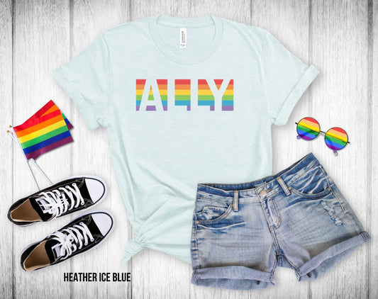 Proud Ally - Rainbow Arch - V-Neck Unisex Tee