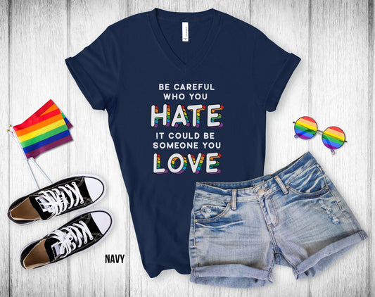 Be Careful Who You Hate It Could Be Someone You Love - 3D Text - Unisex V-Neck Tee