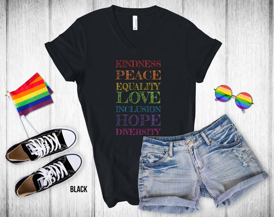 Kindness, Peace, Equality - Unisex V-Neck Tee