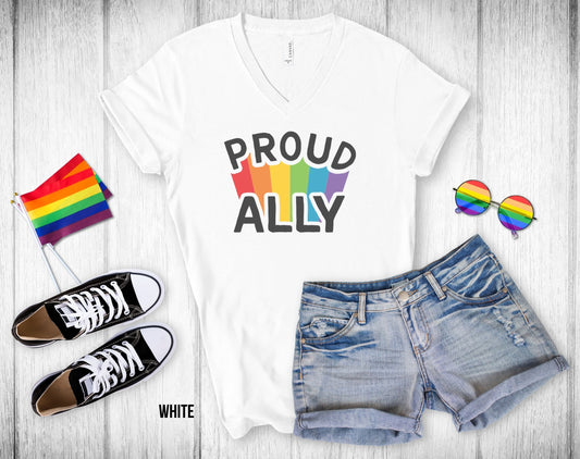 Proud Ally - Rainbow Arch - V-Neck Unisex Tee