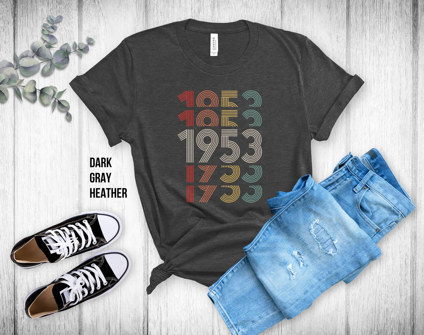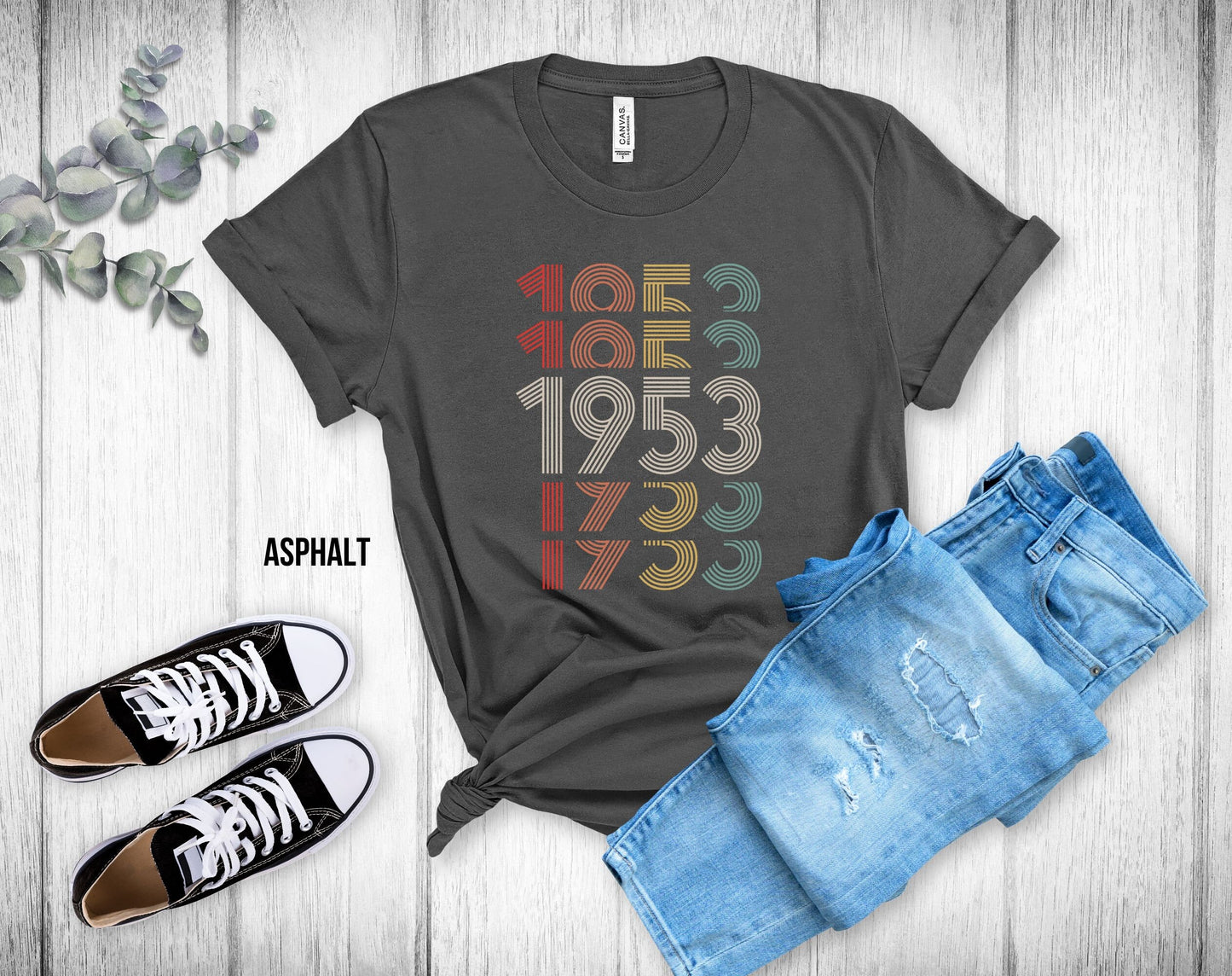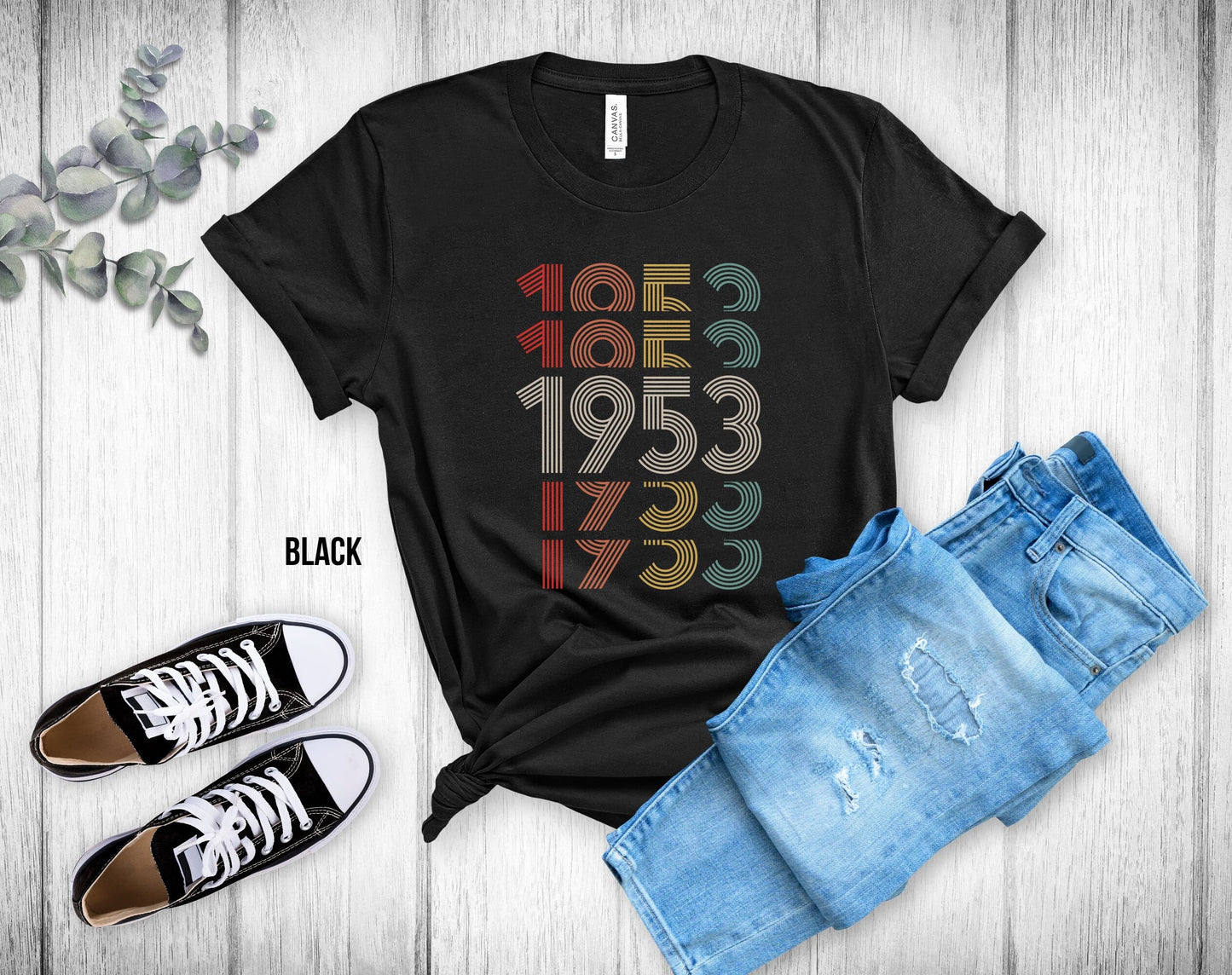 Celebrate your 70th birthday in style with our retro birthday year shirt! This tee features bold, stacked text showcasing your birth year in a classic and timeless design.