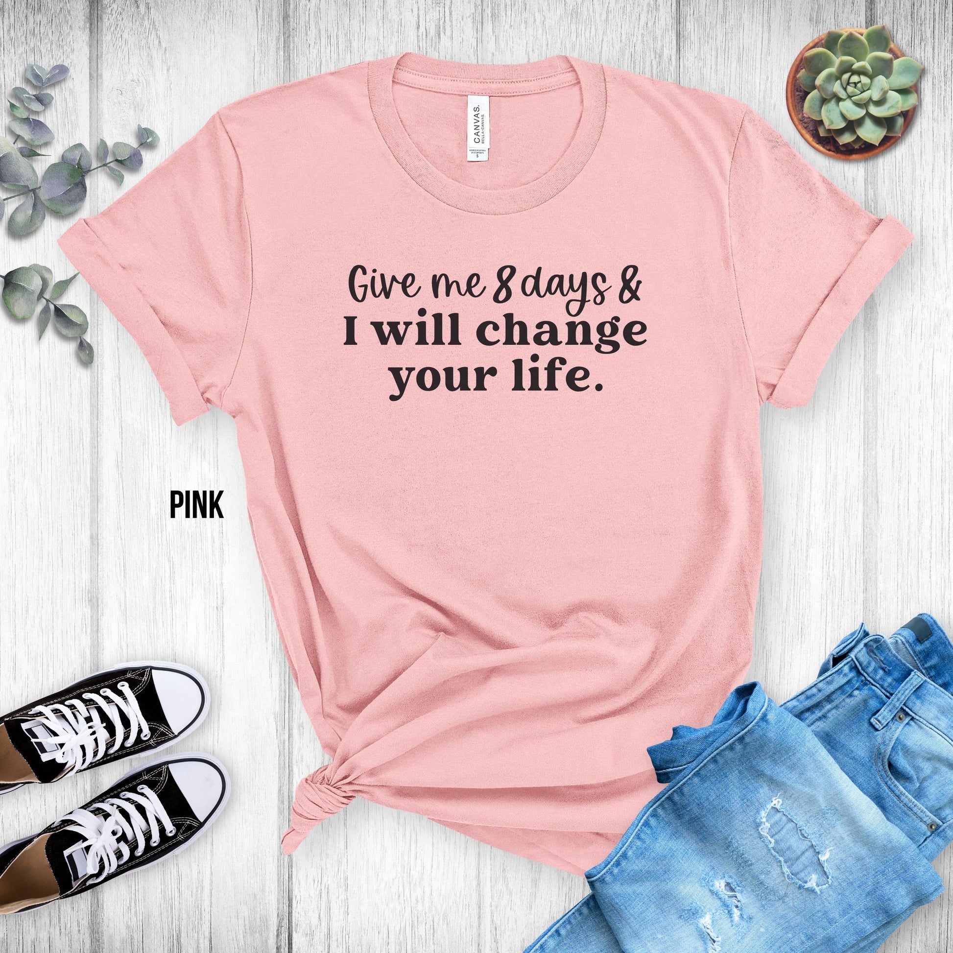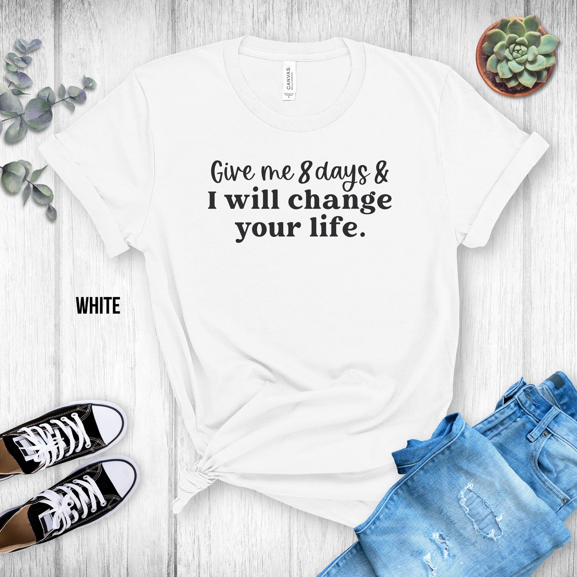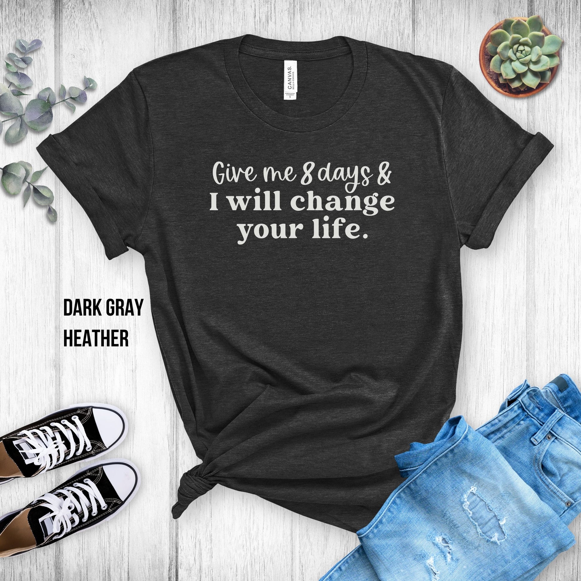 Choose from many colors with this "Give Me 8 Days & I Will Change Your Life" T-Shirt!