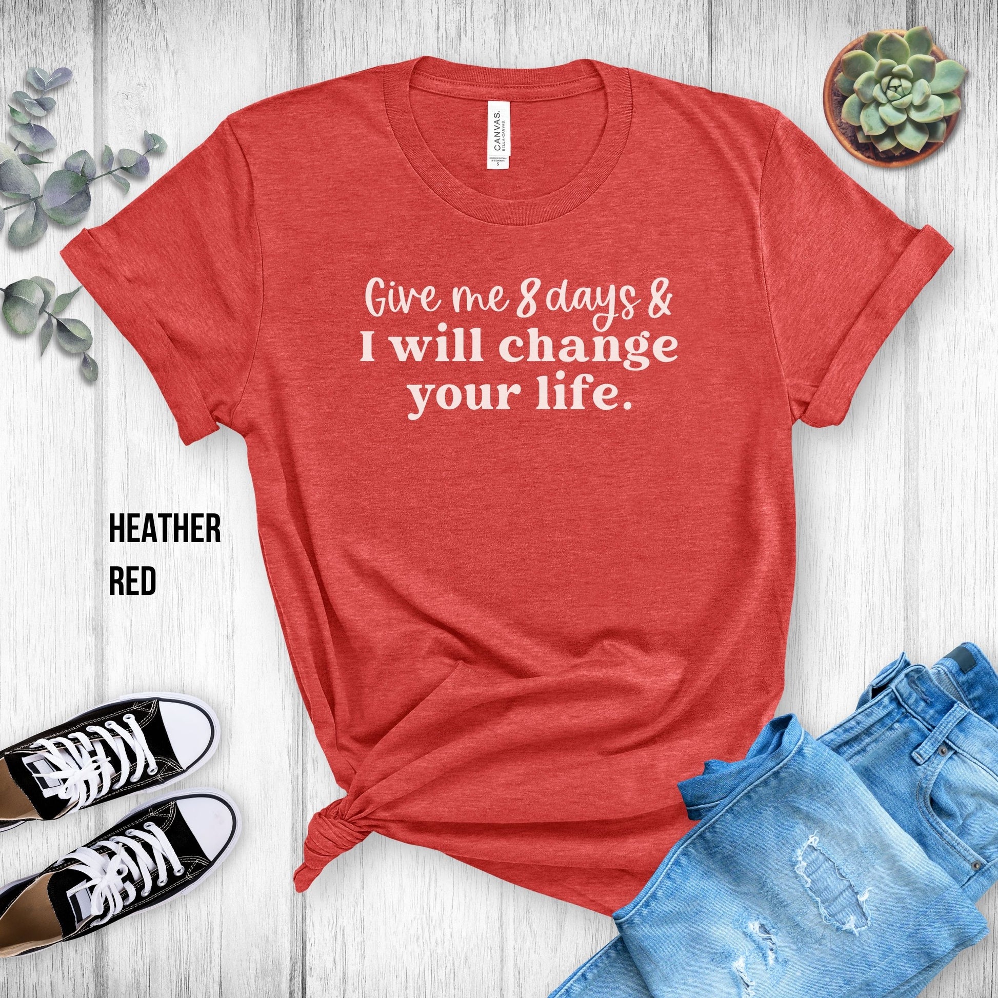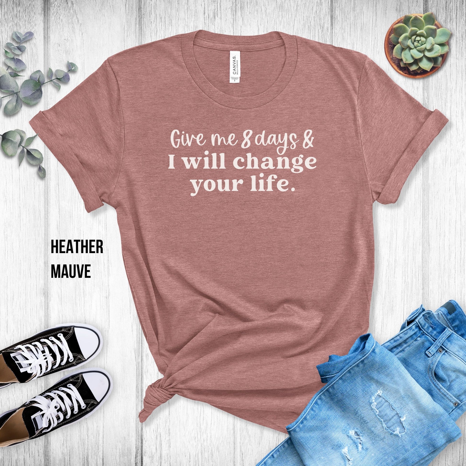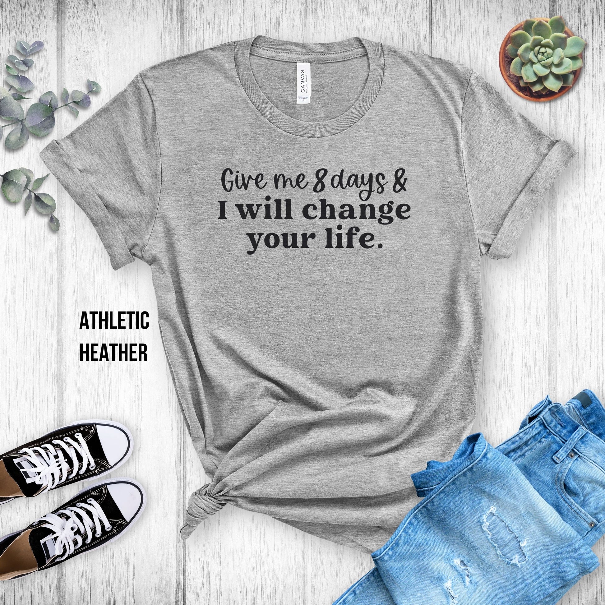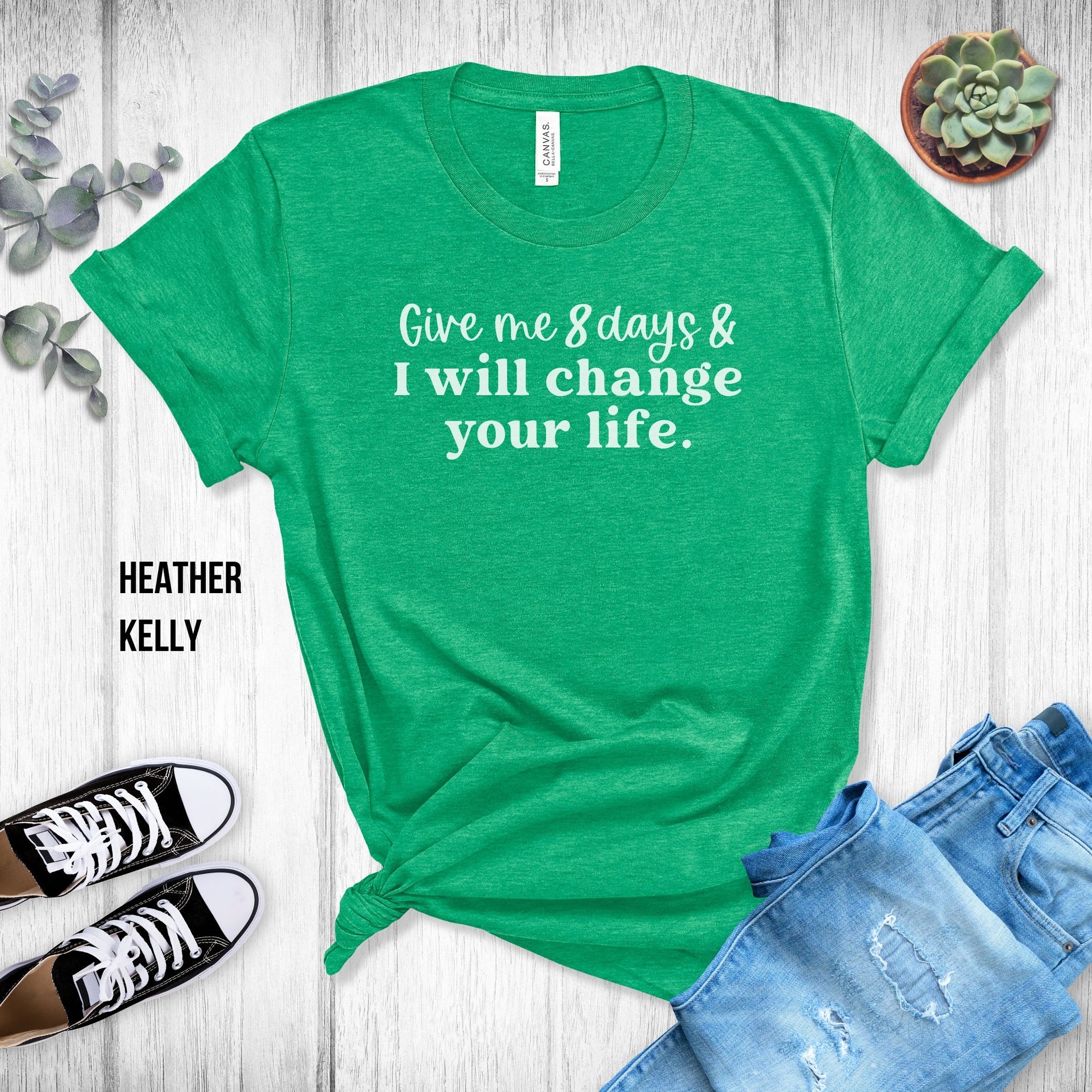 Choose from many colors with this "Give Me 8 Days & I Will Change Your Life" T-Shirt!